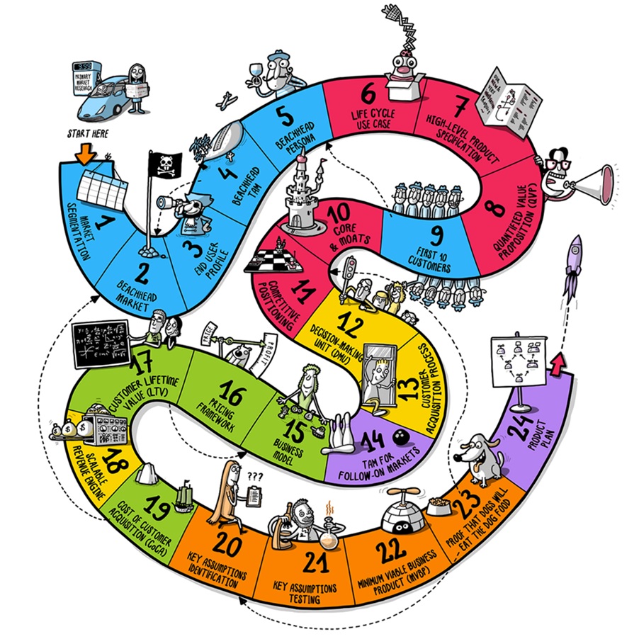 | 제3단계 최종사용자 구체화 | 제8단계 가치제안 정량화 | 제18단계 확장 가능한 수익 엔진 설계 | 제17단계 획득 고객의 생애 가치예측 | 제22단계 최소 사업가능 제품 정의 | |